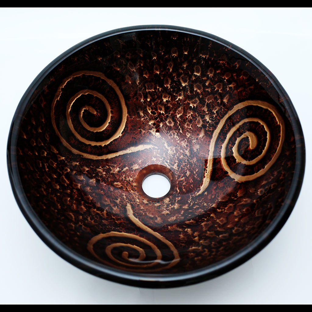 Arsumo 140114 Antique Hunt Tempered Glass Vessel Sink with Brushed Nickel Faucet