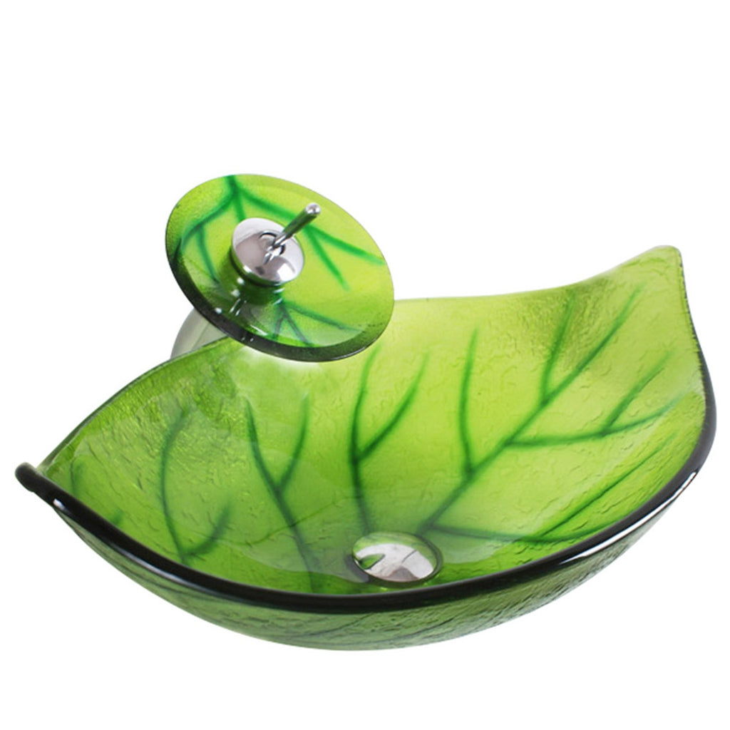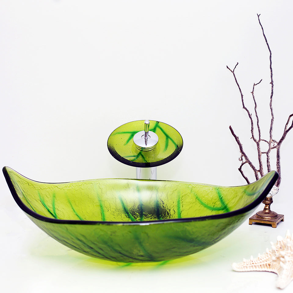 Arsumo Green Leaf Oval Glass Vessel Bathroom Sink BWY140186