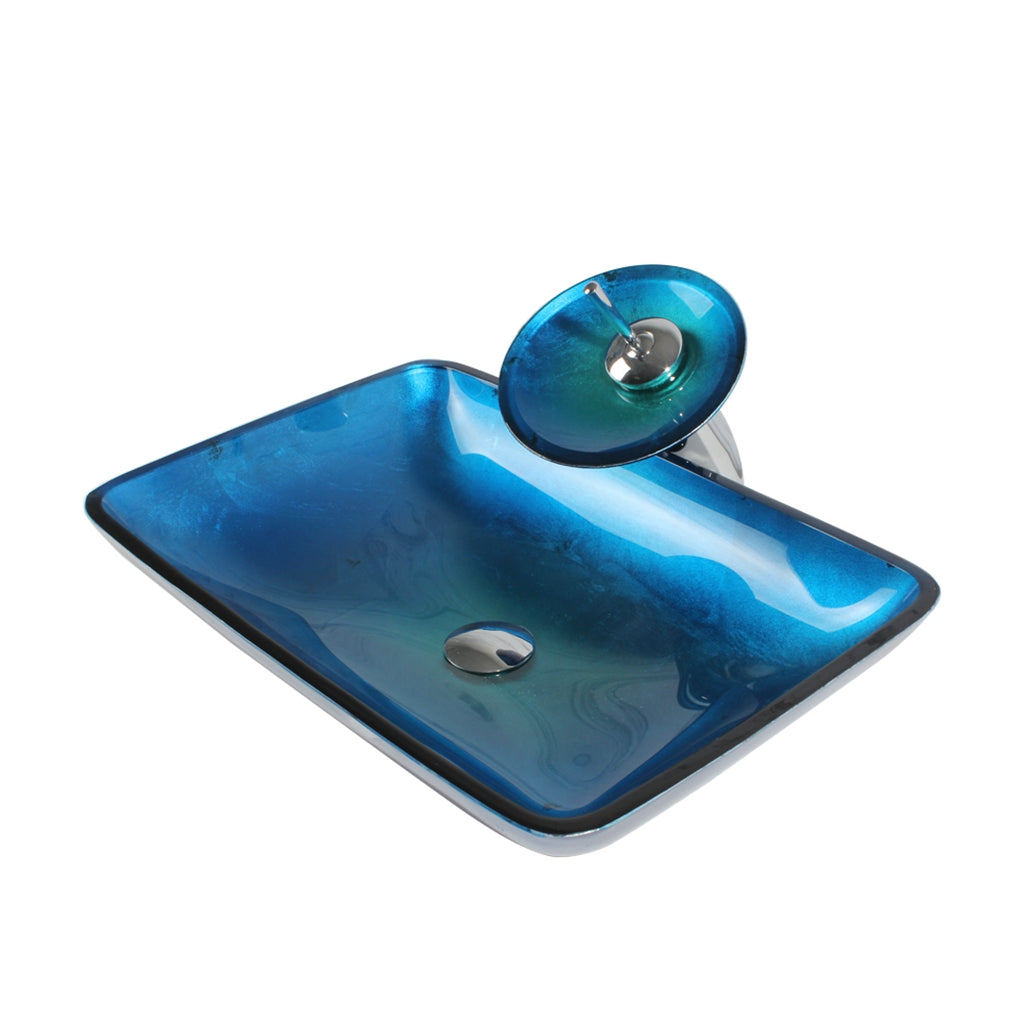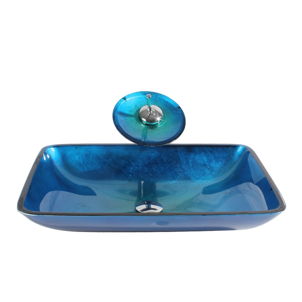 Arsumo Rectangular Blue Glass Vessel Bathroom Sink BW10-158