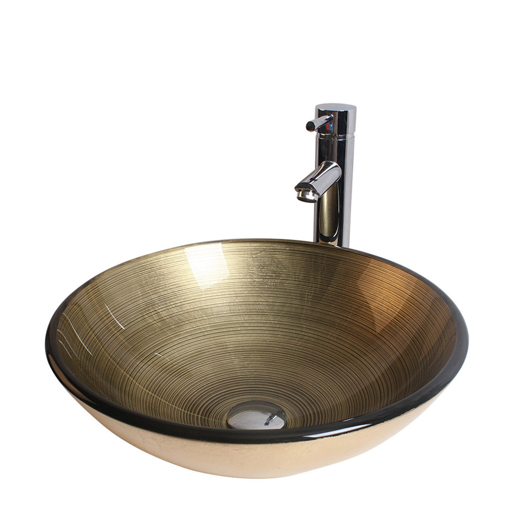 Arsumo Golden Circular Glass Vessel Bathroom Sink BWY09-010