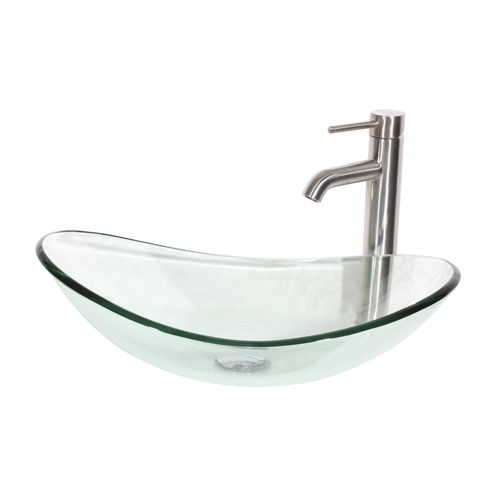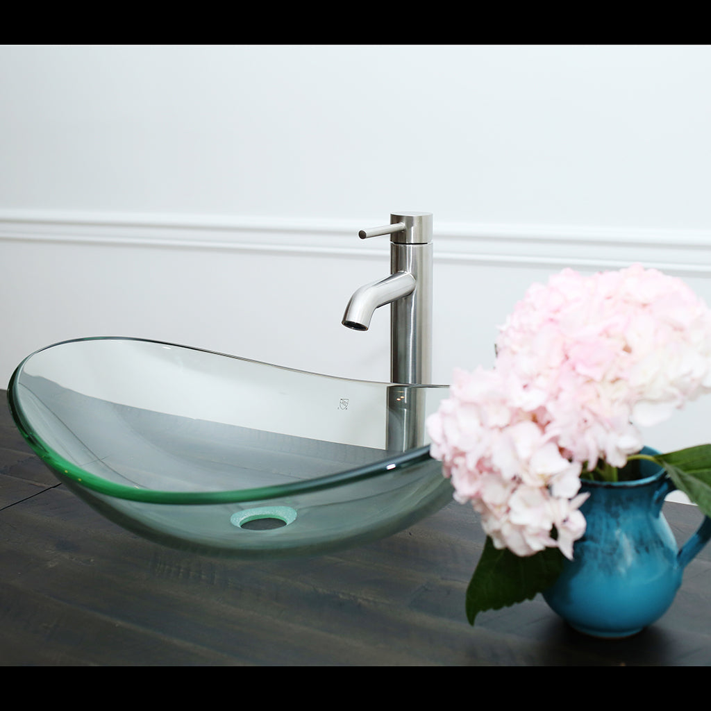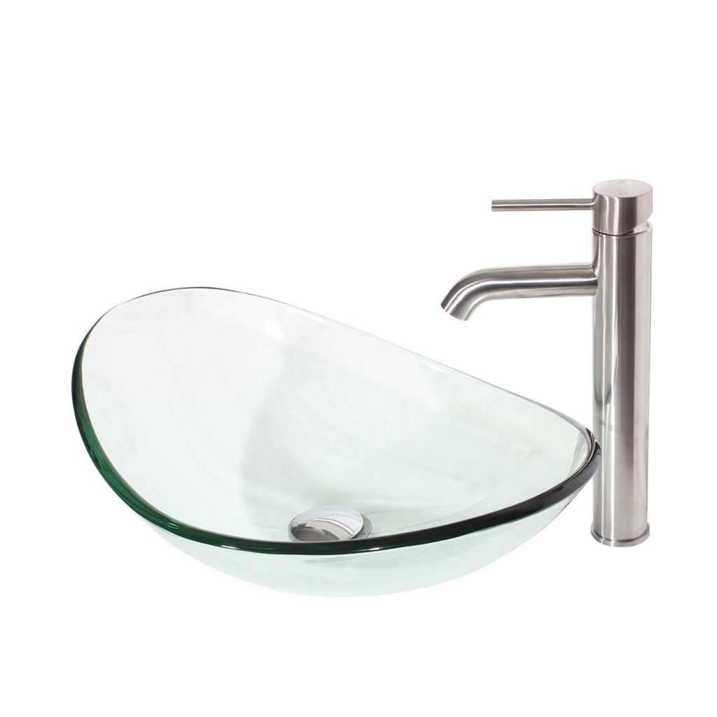 Elegant Clear oval glass vessel sink with brushed nickel faucet